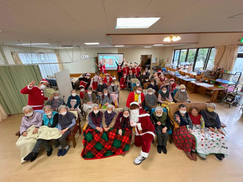 少し前になりますが、昨年12月、特養なでしこ苑では、クリスマスの雰囲気を感じていただけるよう、おやつの時間にクリスマスケーキをご用意しました。