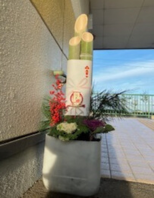 初日に照らされた門松は、職員と利用者様の協同作品です。どうぞご覧ください。
