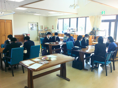 また、昼食を交えた歓談の場では、職場の雰囲気や新人時代の体験談などを共有しました。さらに自宅学習について案内し、入職に向けた準備を進めています。