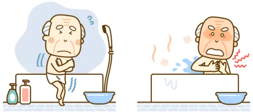 暖かい部屋から寒い脱衣所・浴室へ移動すると、血管が縮んで血圧が急上昇します。