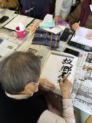 出来上がった福笑いをご覧になり、「上手く出来た!」「こんなんになったの?」と驚かれたり、満足そうに笑われたりと、あちこちで笑い声が聞こえてきました。おせち料理やおやつも召し上がっていただき、お正月らしい穏やかな時間を過ごしていただけました。